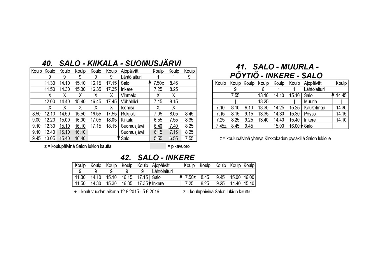 Mewstor kirjoitti:Okei nyt on kyllä pakko sanoa, että tuo on jo todella törkeää. Ei yksikään bussi?! Ihan oikeasti? Millä esim. vanhukset joilla ei ole autoa, pääsevät tärkeille asioille jotka voi hoitaa vain kaupungissa? Ja ne nuoret jotka ovat saaneet kaupungista kesätöitä, mutta eivät edes voi saada ajokorttia vielä eivätkä ehkä pysty tai halua asua vielä omassa asunnossa? Toivottavasti mahdollisimman moni valittaa. Ihan syrjemmällekin seudulle menee busseja kesäisin.